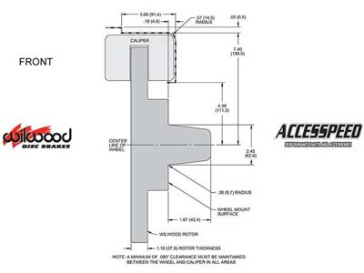 Red Calipers. See separate listing for the Black Caliper systems. Installation of Wilwood Disc Brake Kits may affect the wheel offset and will require a larger diameter wheel for caliper clearance. All returned orders are subject to a re-stocking fee, so please make sure your wheels will work before ordering. Shipping Promotions are valid in the Lower 48 States only.  For all other areas, please contact us for a discounted rate quote.
