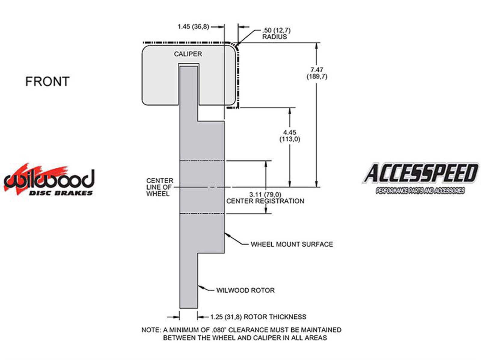 Installation of Wilwood Disc Brake Kits may affect the wheel offset and will require a larger diameter wheel for caliper clearance. All returned orders are subject to a re-stocking fee, so please make sure your wheels will work before ordering. Shipping Promotions are valid in the Lower 48 States only.  For all other areas, please contact us for a discounted rate quote.