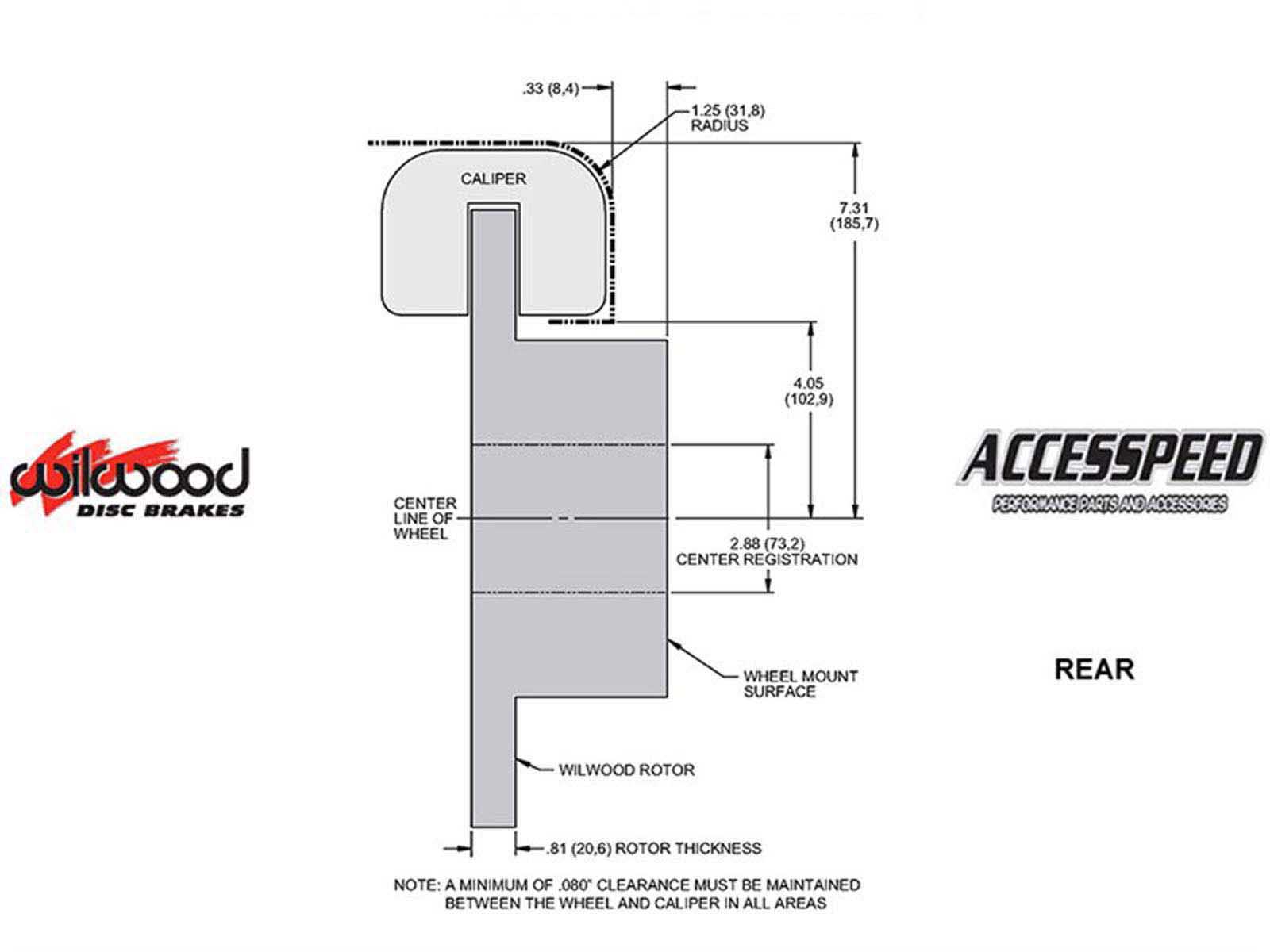 *This Brake Kit may require 15-inch or larger wheels and/or wheel spacers. Please refer to the wheel clearance diagram image to verify caliper clearance for your specific wheel.