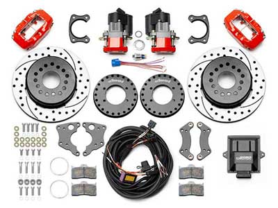 Wilwood’s Forged Dynalite Pro-Series Rear Electronic Parking Brake Kits provides a complete solution for popular muscle car rear axles that require a parking brake. Forged Billet Dynalite four piston calipers, 12.19" one-piece rotors, and high friction pads provide optimized and balanced braking for all types of custom performance street/strip and show machines. The unique Electronic Parking Brake caliper provides a static high torque static holding power for parking without mechanical cabling. Supplied with control unit and harness assembly, it simplifies installation and use. Optional caliper finishes and rotor designs enable the builder to personalize the style and optimize brake performance for every individual application. Requires Wilwood Flexline Brake Lines, sold separately.