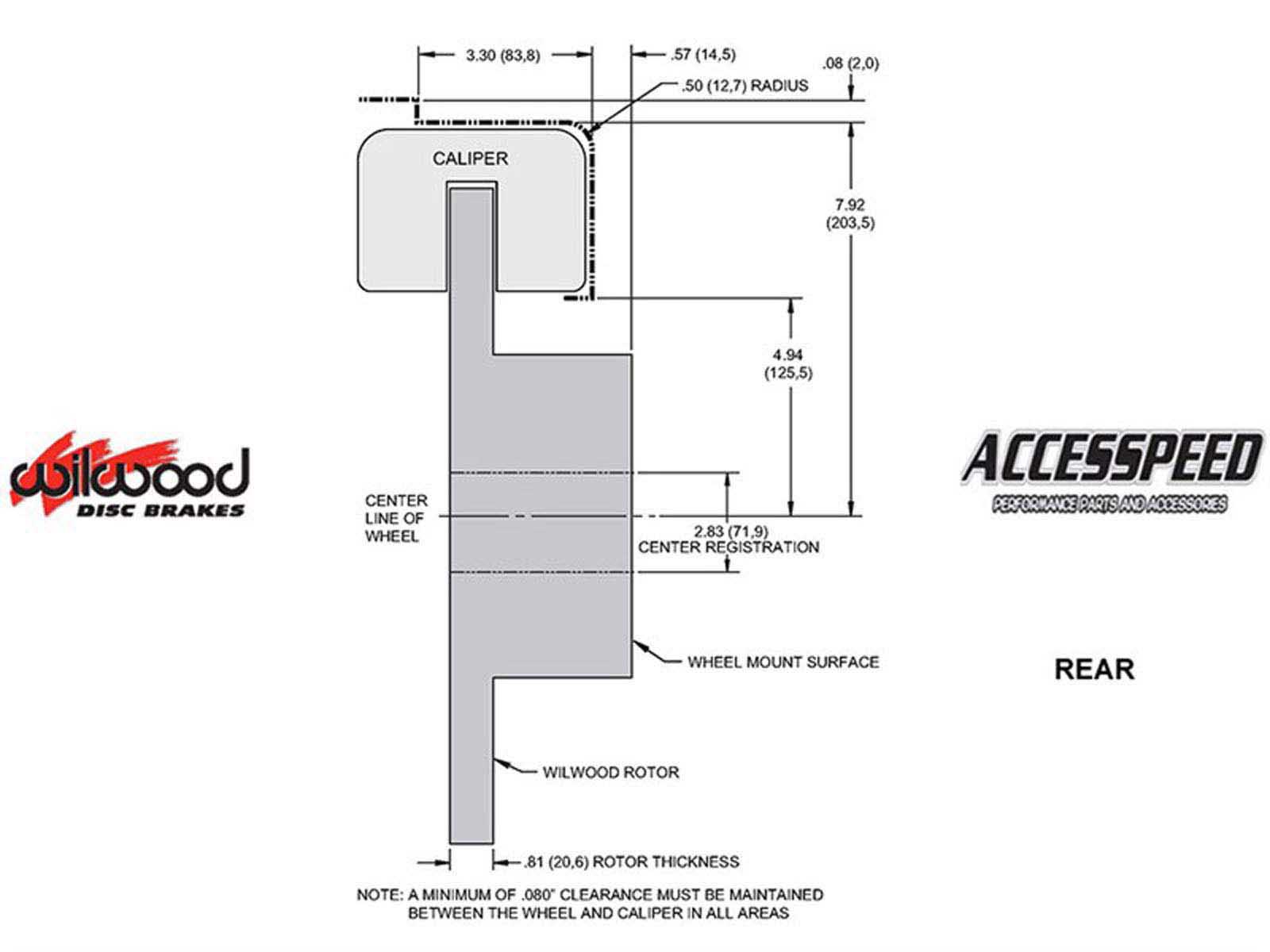 *This Brake Kit may require 18-inch or larger wheels or wheels spacers for proper fit. Please refer to the wheel clearance diagram image to check to see if it will fit your specific wheel.