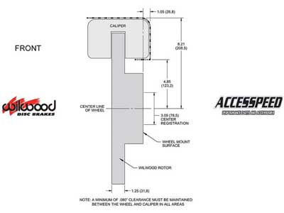 Black Calipers. See separate listing for the red caliper systems. Installation of Wilwood Disc Brake Kits may affect the wheel offset and will require a larger diameter wheel for caliper clearance. All returned orders are subject to a re-stocking fee, so please make sure your wheels will work before ordering. Shipping Promotions are valid in the Lower 48 States only.  For all other areas, please contact us for a discounted rate quote.