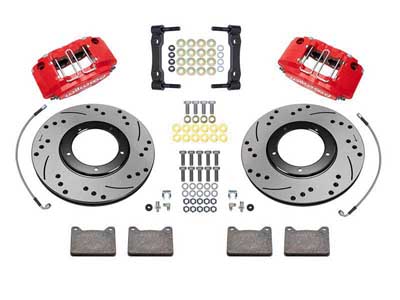Wilwood Powerlite Front Brake Kits from Accesspeed allow easy upgrade to 4 piston Powerlite calipers, 1 piece rotor and hat assemblies formulated from proprietary iron compounds and BP-10 performance pads. using the stock rotor and spindle mounting. Kits from Accesspeed come complete with hardware and Wilwood’s Flexline stainless steel brake lines.