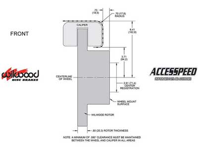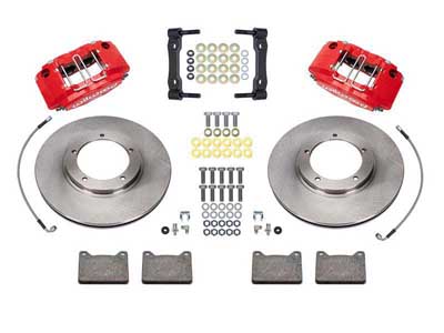 Wilwood Powerlite Front Brake Kits from Accesspeed allow easy upgrade to 4 piston Powerlite calipers, 1 piece rotor and hat assemblies formulated from proprietary iron compounds and BP-10 performance pads. using the stock rotor and spindle mounting. Kits from Accesspeed come complete with hardware and Wilwood’s Flexline stainless steel brake lines.
