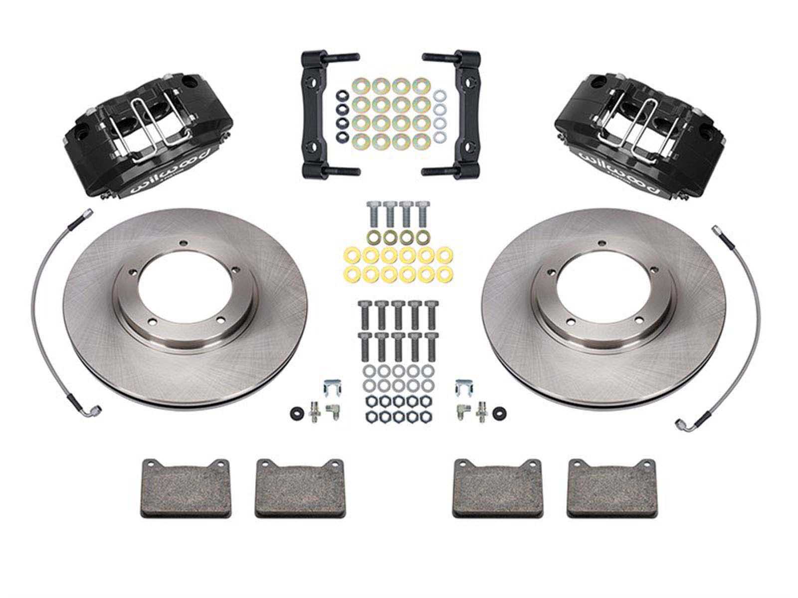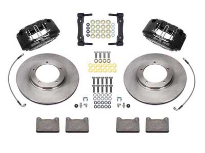Wilwood Powerlite Front Brake Kits from Accesspeed allow easy upgrade to 4 piston Powerlite calipers, 1 piece rotor and hat assemblies formulated from proprietary iron compounds and BP-10 performance pads. using the stock rotor and spindle mounting. Kits from Accesspeed come complete with hardware and Wilwood’s Flexline stainless steel brake lines.