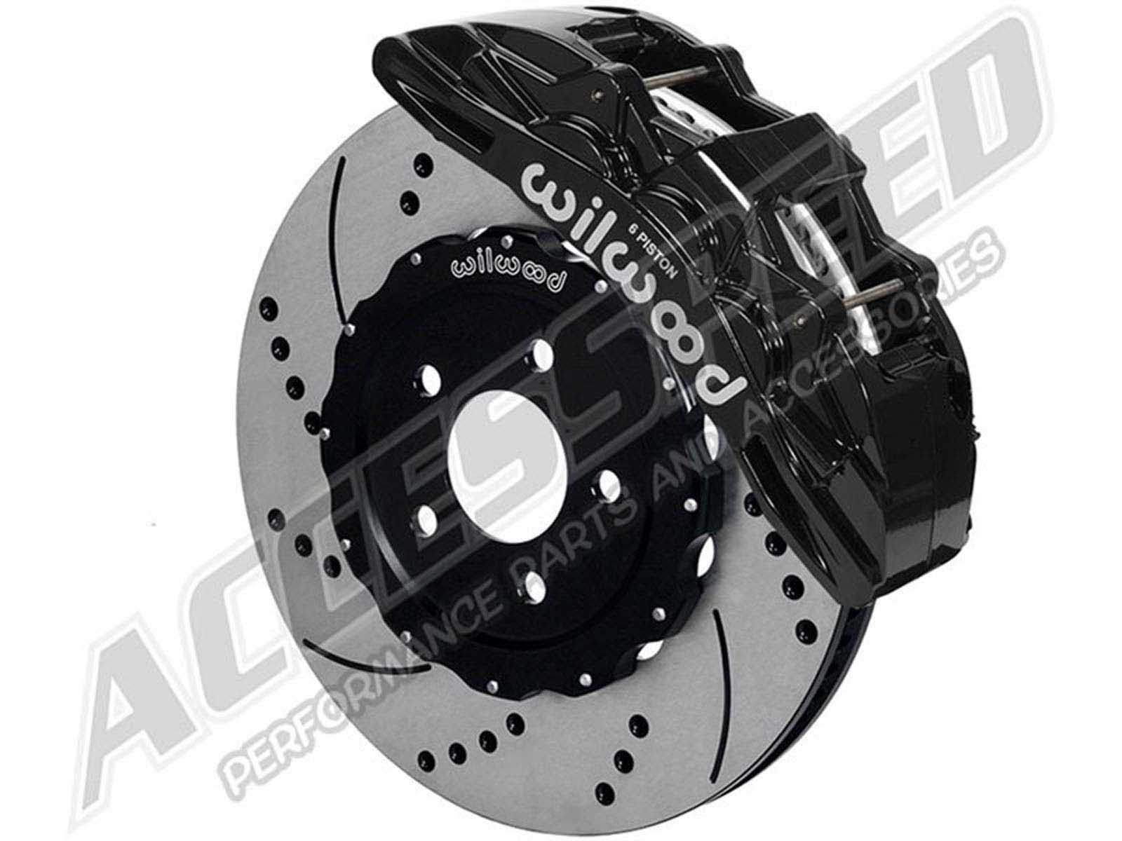 The king of the hill brake system SX6R calipers were designed for the specific purpose of providing high capacity braking with large diameter rotors for extreme performance duty and race vehicles. It is the largest dual-purpose caliper Wilwood has produced, providing big brake performance for street, track and show vehicles. Offering additional enhanced braking with wheel and tire upgrades, highly recommended by Accesspeed. Kits are fully compatible with OE master cylinder output and ABS function. Directional 72 staggered vane 15.00” rotors provide maximum cooling for sustained high heat durability.
