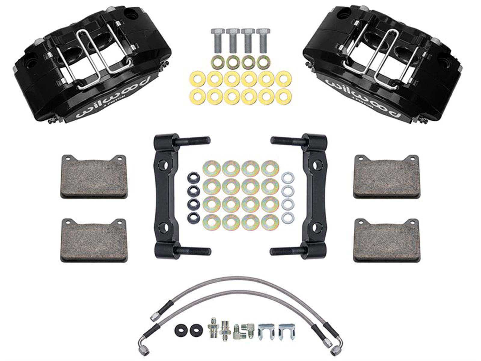 Wilwood Powerlite Front Caliper and Bracket Kits from Accesspeed allow easy upgrade to 4 piston Powerlite calipers and BP-10 performance pads using the stock rotor and spindle mounting. Kits from Accesspeed come complete with hardware and Wilwood’s Flexline stainless steel brake lines.