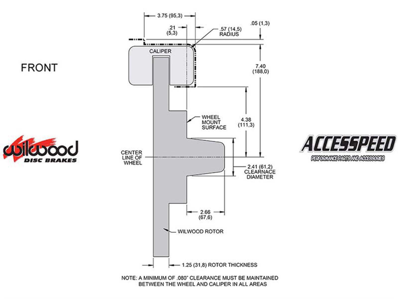 *This Brake Kit may require 17-inch or larger wheels and/or wheel spacers. Please refer to the wheel clearance diagram image to verify fitment of your specific wheel.