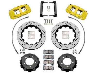 The Wilwood AERO6 Big Brake Kit from Accesspeed is the ultimate upgrade for your Porsche. Wilwood AERO6 calipers were designed for the specific purpose of providing big capacity braking with large diameter rotors for heavy weight and extreme duty vehicles. For cars, it’s the biggest of the big providing big brake performance for show and dual purpose street and track vehicles. For trucks and SUV’s, it provides big stopping power for towing, off-road, and enhanced braking with wheel and tire upgrades. Kits listed for specific vehicles are fully compatible with OE master cylinder output and ABS function. Directional staggered vane 14.00” to 14.25” rotors provide maximum cooling for sustained high heat durability. Wilwood Flexline braided stainless brake lines are included.