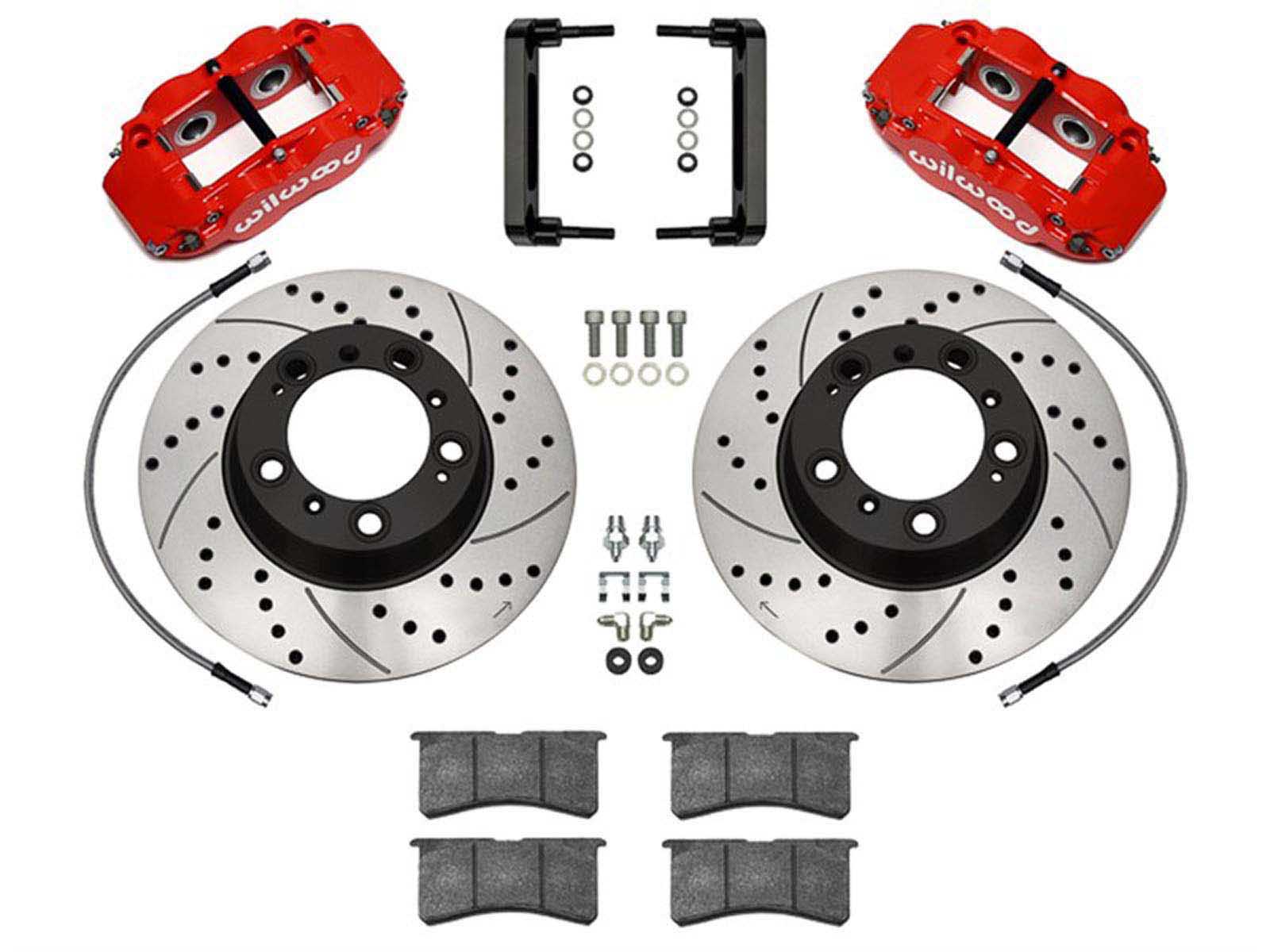 Wilwood 140-17101-DR FNSL4R 12.98" Rear Big Brake Kit with Drilled Rotors Red Calipers & Brake Lines for 1999-2004 Porsche 911