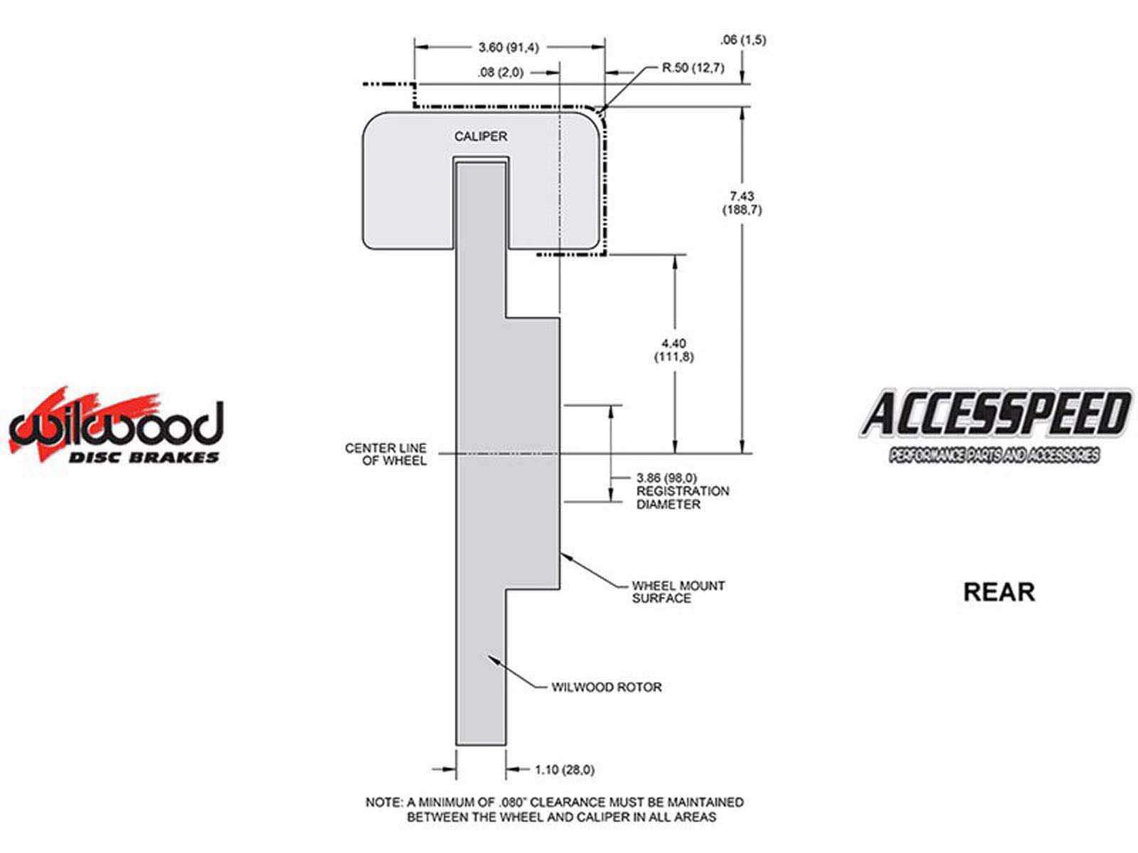 *This Brake Kit may require 15-inch or larger wheels and/or wheel spacers. Please refer to the wheel clearance diagram image to verify clearance for your specific wheel.