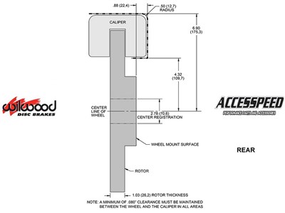 Installation of Wilwood Disc Brake Kits may affect the wheel offset and will require a larger diameter wheel for caliper clearance. All returned orders are subject to a re-stocking fee, so please make sure your wheels will work before ordering. Shipping Promotions are valid in the Lower 48 States only. For all other areas, please contact us for a discounted rate quote.