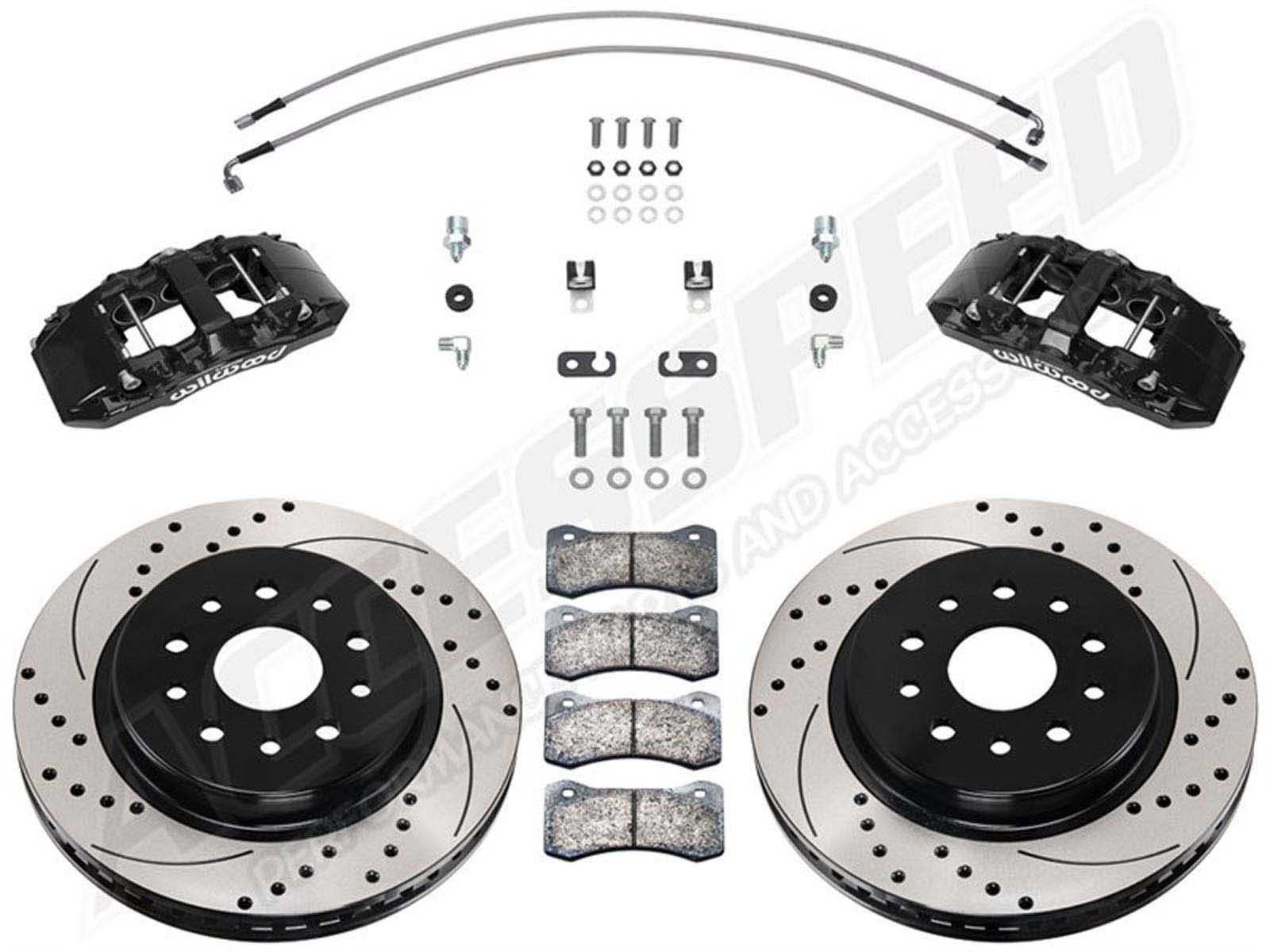 Black Calipers. See separate listing for the red caliper systems. The installation of Wilwood Disc Brake Kits may affect the wheel offset and will require a larger diameter wheel for caliper clearance. All returned orders are subject to a re-stocking fee, so please make sure your wheels will work before ordering. Shipping Promotions are valid in the Lower 48 States only. For all other areas, please contact us for a discounted rate quote.