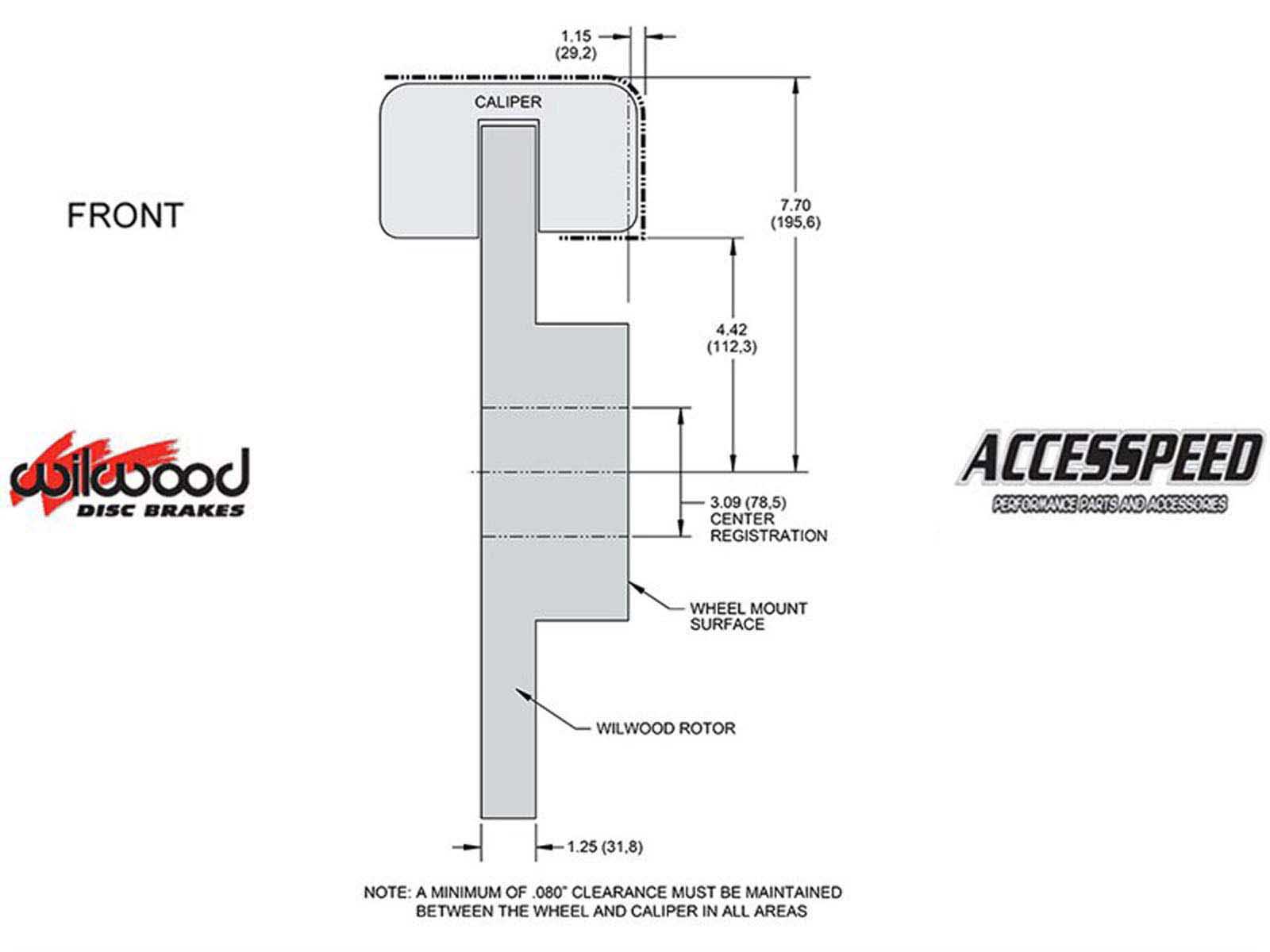 Installation of Wilwood Disc Brake Kits may affect the wheel offset and will require a larger diameter wheel for caliper clearance. All returned orders are subject to a re-stocking fee, so please make sure your wheels will work before ordering. Shipping Promotions are valid in the Lower 48 States only.  For all other areas, please contact us for a discounted rate quote.