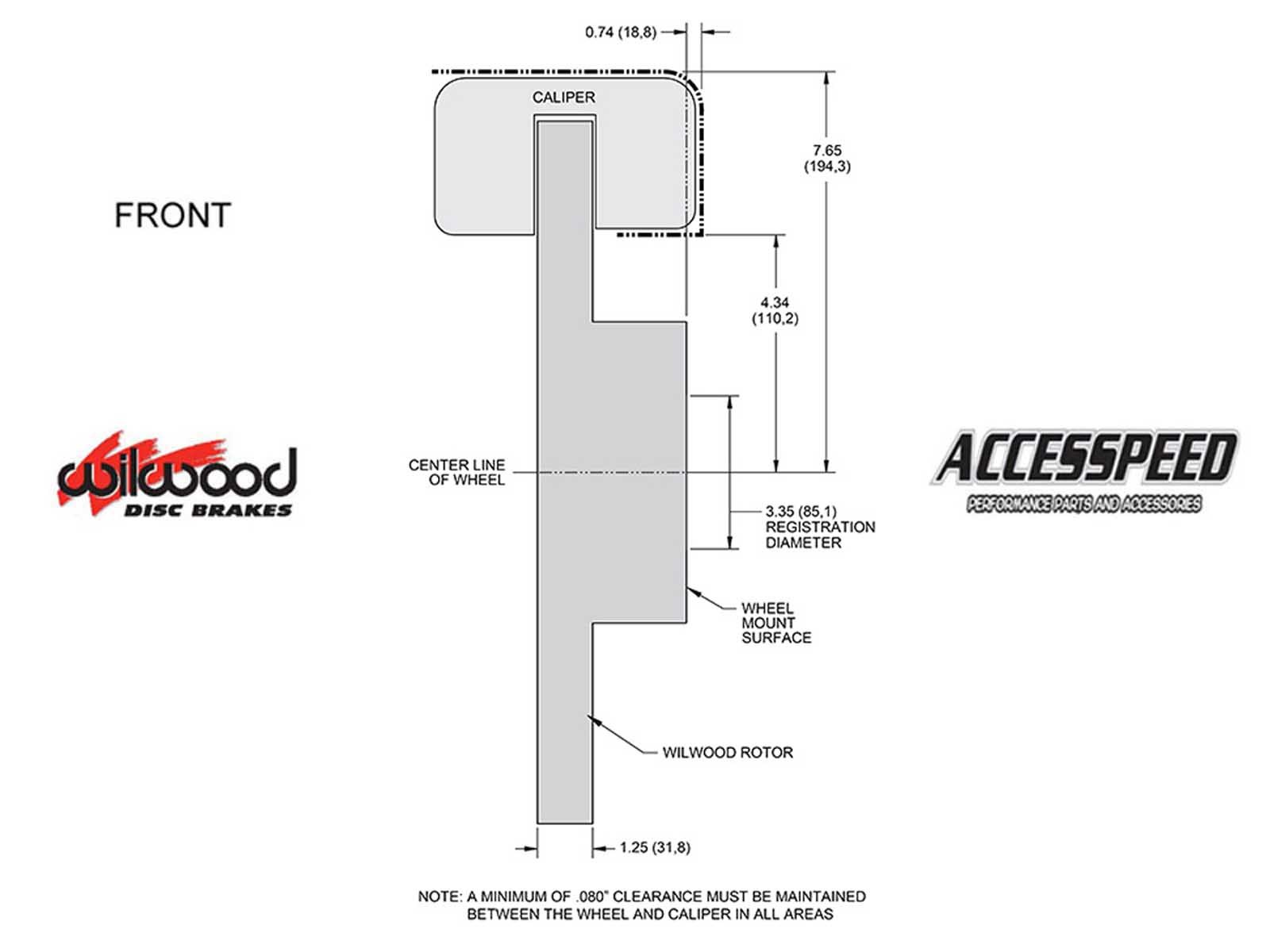 *This Brake Kit may require 17-inch or larger wheels. Please refer to the wheel clearance diagram image to verify caliper clearance for your specific wheel.