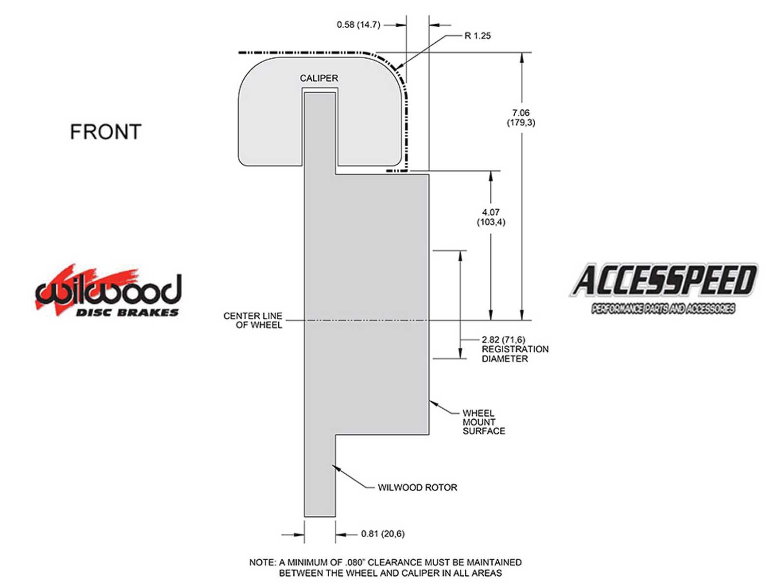 *This Brake Kit may require 15-inch or larger wheels and/or wheel spacers. Please refer to the wheel clearance diagram image to verify caliper clearance for your specific wheel.