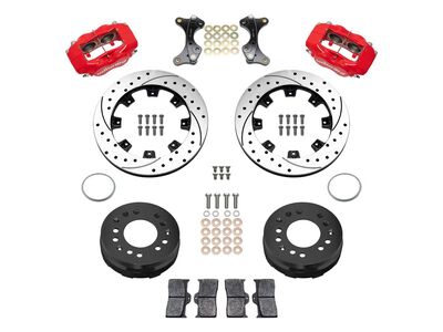 Red Calipers. See separate listing for the black caliper systems. Installation of Wilwood Disc Brake Kits may affect the wheel offset and will require a larger diameter wheel for caliper clearance. All returned orders are subject to a re-stocking fee, so please make sure your wheels will work before ordering. Shipping Promotions are valid in the Lower 48 States only. For all other areas, please contact us for a discounted rate quote.