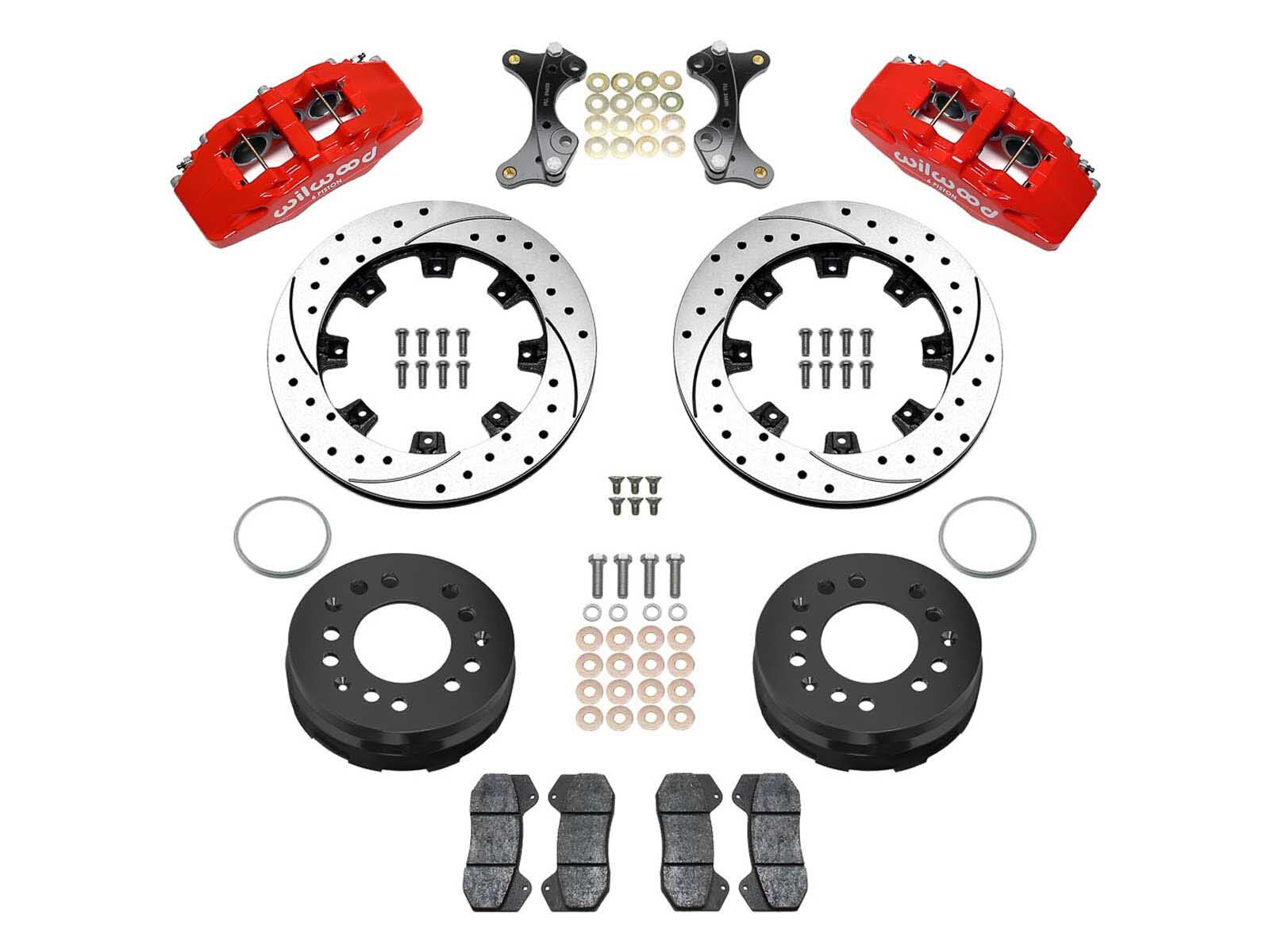 Red Calipers. See separate listing for the black caliper systems. Installation of Wilwood Disc Brake Kits may affect the wheel offset and will require a larger diameter wheel for caliper clearance. All returned orders are subject to a re-stocking fee, so please make sure your wheels will work before ordering. Shipping Promotions are valid in the Lower 48 States only. For all other areas, please contact us for a discounted rate quote.