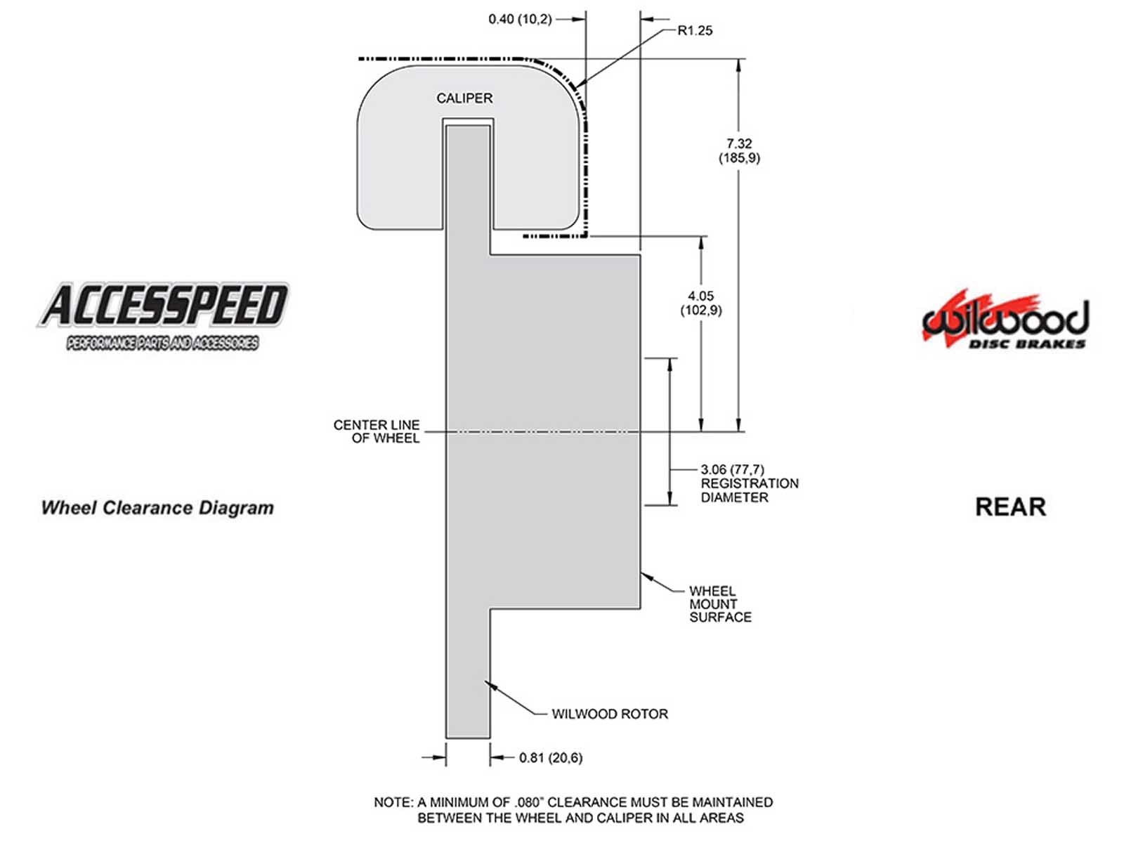 *This Brake Kit may require 15-inch or larger wheels. Please refer to the wheel clearance diagram image to verify caliper clearance for your specific wheel.