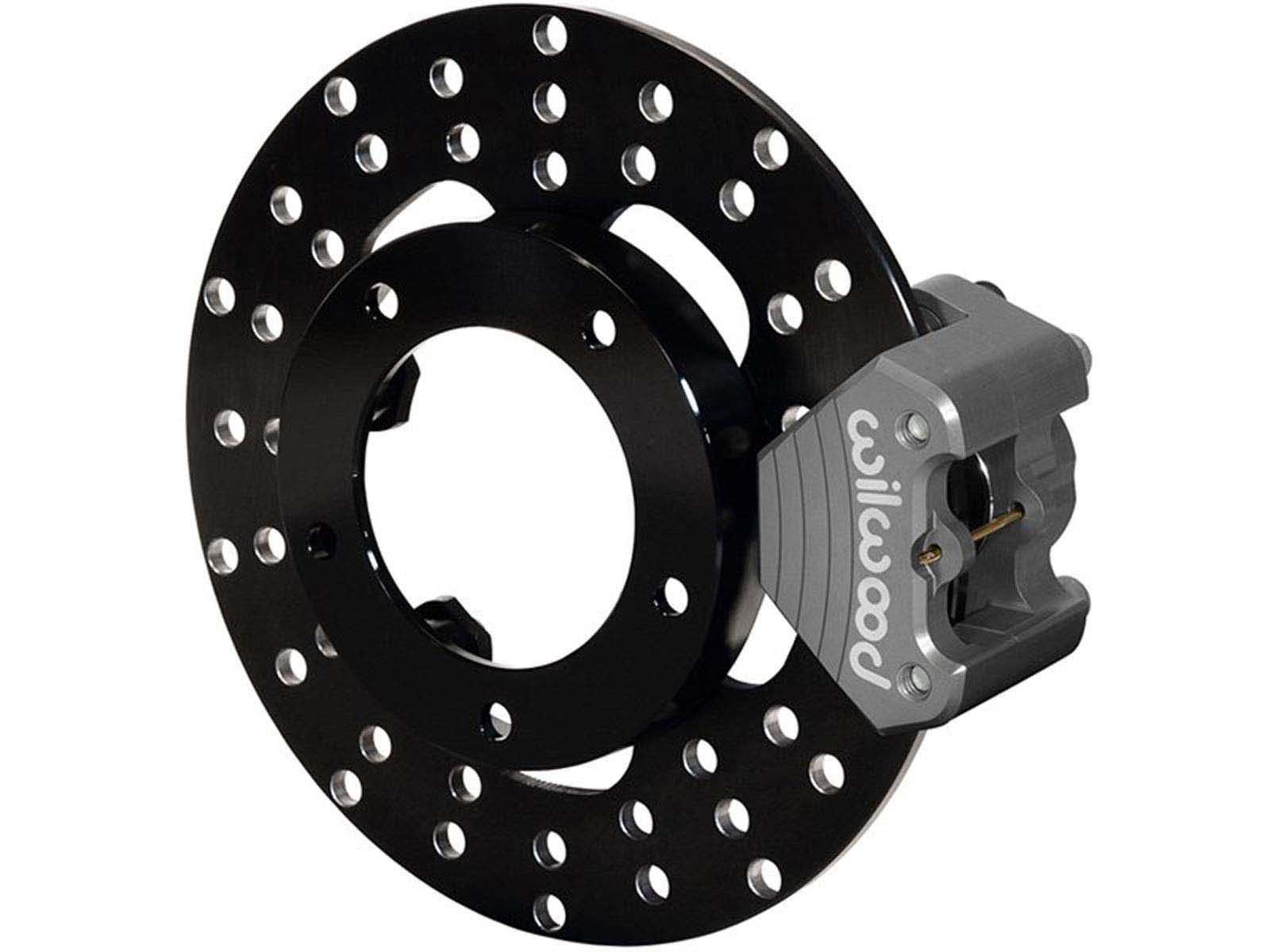 Wilwood’s Dynalite Single Floater front drag kit is purpose built for use on lightweight cars using spindle mount brakes on various lightweight drag spindles. The DLSF calipers and lightweight steel rotors combine to provide excellent static holding power for use as a staging brake or as a supplementary brake on vehicles using parachutes and rear brakes to provide the majority of the stopping power. Aluminum hats are provided to mount the rotors directly to the spindle mount wheels. A choice of solid or lightweight drilled rotors is offered to provide the lowest possible weight to the front axle. Mount brackets are included. NOTES: Requires welding to affix bracket assembly to spindle. Kit requires spindle mount wheels with 5 x 4.75" BC to attach hat & rotor.