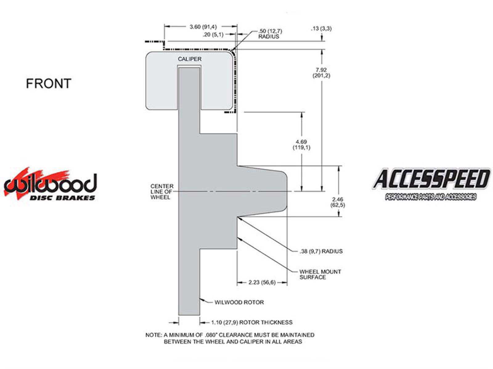 The Wilwood Forged Narrow Superlite 6R Front Big Brake Kit includes FNSL6R Billet Forged six-piston calipers with 2-Piece Rotor & Hub kit delivers a high-performance combination for braking power and style in this group of kits engineered for traditional non-ABS spindles on American muscle cars and vintage rods. Built exclusively for larger wheels, FNSL6 kits enhance tire and suspension upgrades on all types of custom show and high-performance dual-purpose street and track machines. A full range of options for caliper finishes and rotor designs are guaranteed to catch the eye of the most discriminating enthusiast while providing optimized brake performance for every individual application. Requires Wilwood Flexline Brake Lines, sold separately. NOTE: Kit fits 74-80 Pinto / Mustang II original disc brake spindles only.