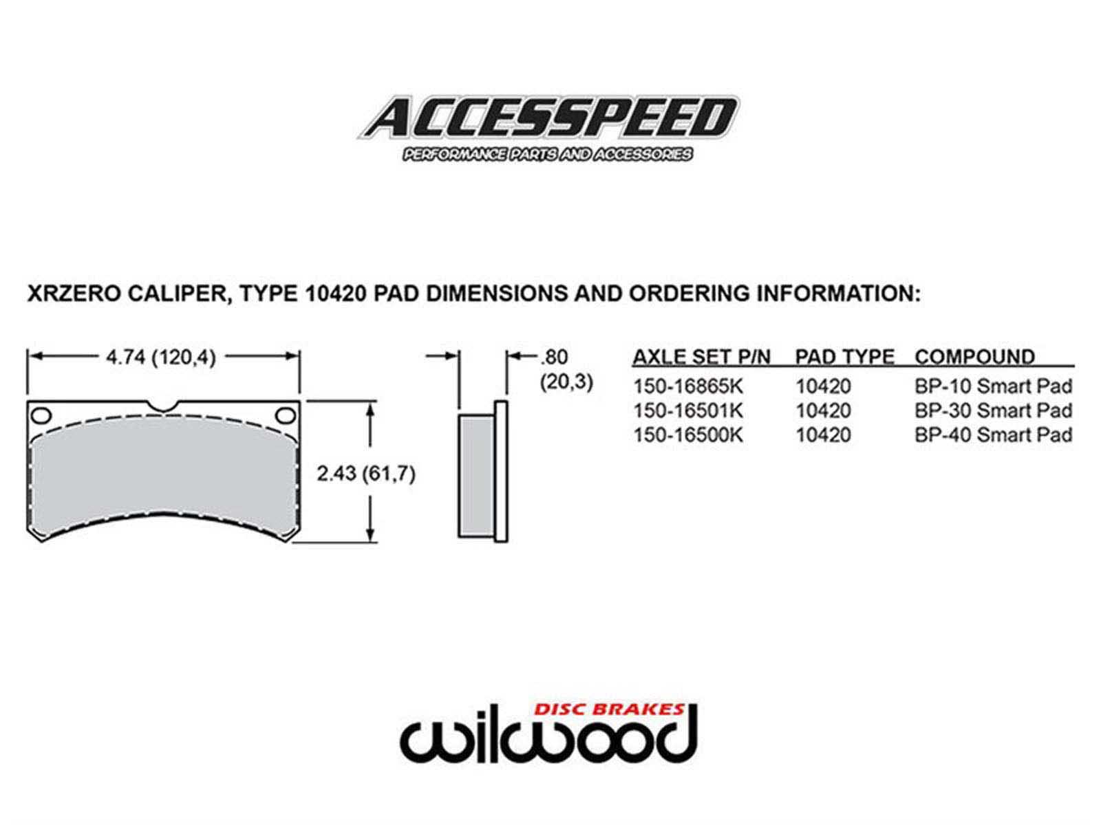 BP compound SmartPad numbered series represents the latest compounds developed through Wilwood research. Used by top racers in all auto racing genres, they also come standard in most kits for street use. Four different formulas offer increasingly aggressive friction and tolerance to high temperature, from spirited street use to extremely demanding racing competition. Multiple friction options allow users to optimize brake response to track conditions and weather. Compatible with all iron, steel, stainless, and titanium rotors within their intended temperature ranges.