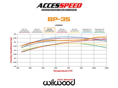 Wilwood BP compound SmartPad numbered series represents the latest compounds developed through Wilwood research. Used by top racers in all auto racing genres, they also come standard in most kits for street use. Four different formulas offer increasingly aggressive friction and tolerance to high temperature, from spirited street use to extremely demanding racing competition. Multiple friction options allow users to optimize brake response to track conditions and weather. Compatible with all iron, steel, stainless, and titanium rotors within their intended temperature ranges.