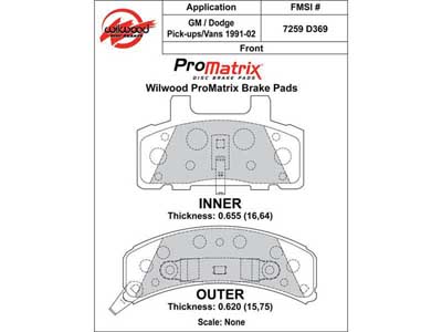 Wilwood ProMatrix dual-sport performance compound brake pads provide the ultimate combination of clean and quiet driving with high performance braking on vehicles equipped with OEM calipers. ProMatrix pads combined upgraded friction with increased resistance to heat fade for street and track use. Thousands of front and rear caliper applications are covered by 155 OE pad shapes for domestic and imported cars, with more being added. Of course, they work with Wilwood improved stock replacement calipers as well, like the GM D52 and D154, and Corvette D8.