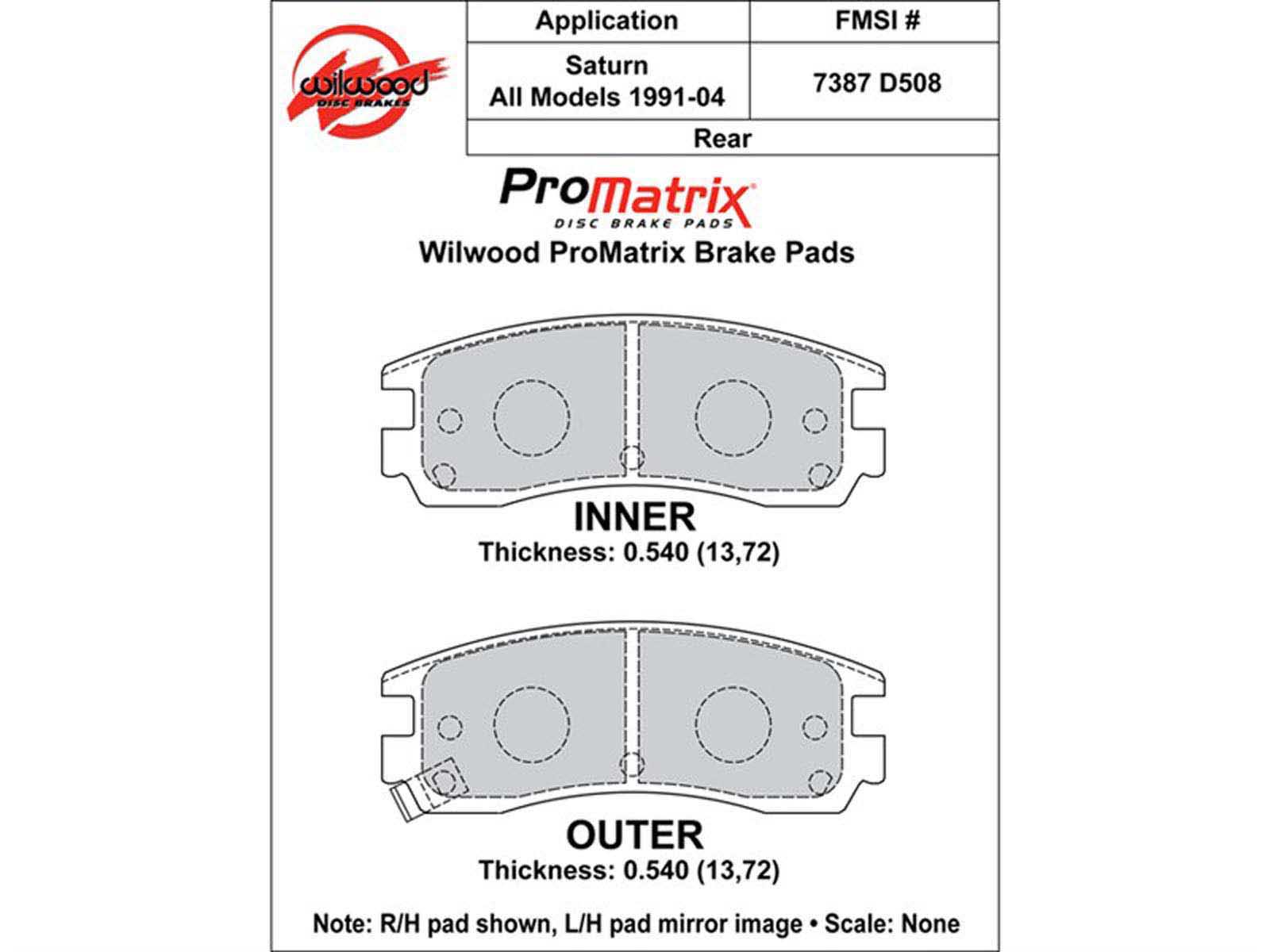 Wilwood ProMatrix dual-sport performance compound brake pads provide the ultimate combination of clean and quiet driving with high performance braking on vehicles equipped with OEM calipers. ProMatrix pads combined upgraded friction with increased resistance to heat fade for street and track use. Thousands of front and rear caliper applications are covered by 155 OE pad shapes for domestic and imported cars, with more being added. Of course, they work with Wilwood improved stock replacement calipers as well, like the GM D52 and D154, and Corvette D8.