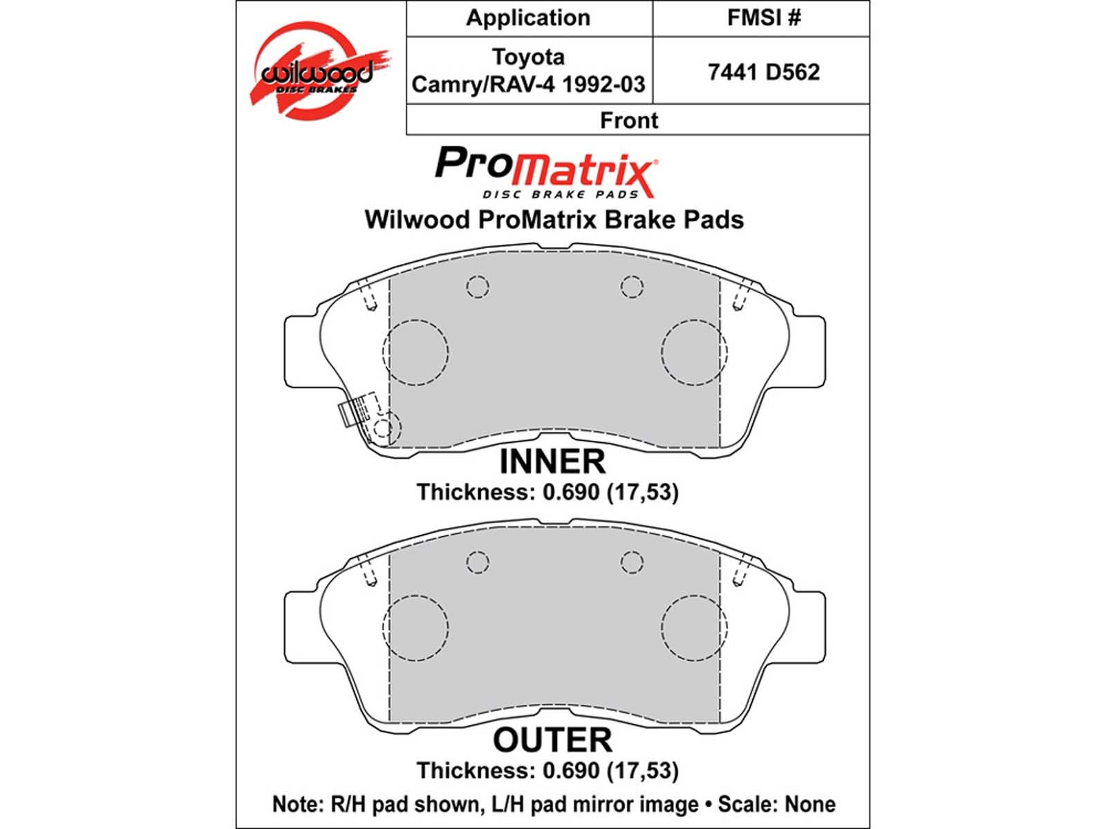 2-Pack of Wilwood 150-D0562K ProMatrix Brake Pad Set, Plate #D562 |