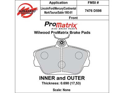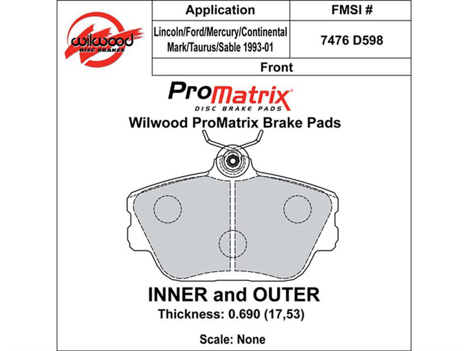 Wilwood 150-D0598K ProMatrix Brake Pad Set, Pad #D598 |