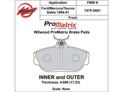 Wilwood 150-D0601K ProMatrix Brake Pad Set, Pad #D601 |