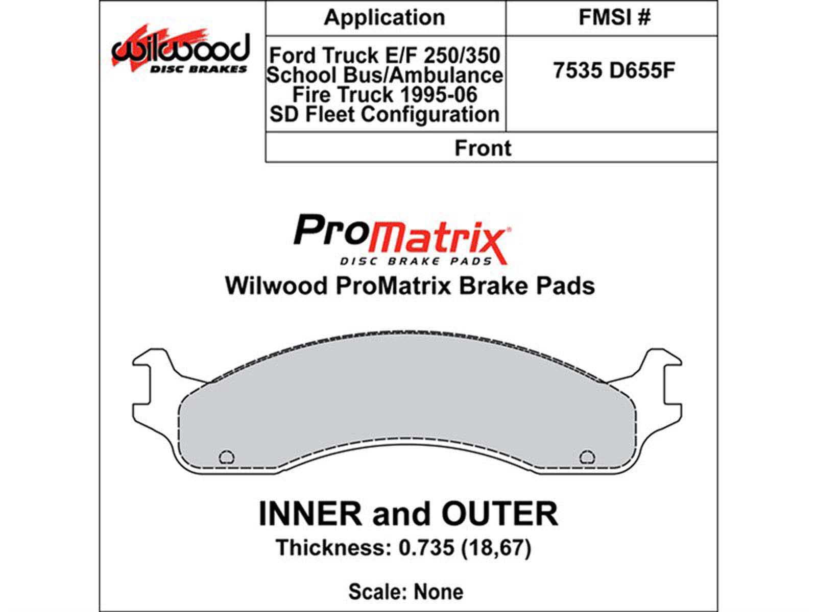 Wilwood 150-D0655FK ProMatrix Brake Pad Set, Pad #D655F
