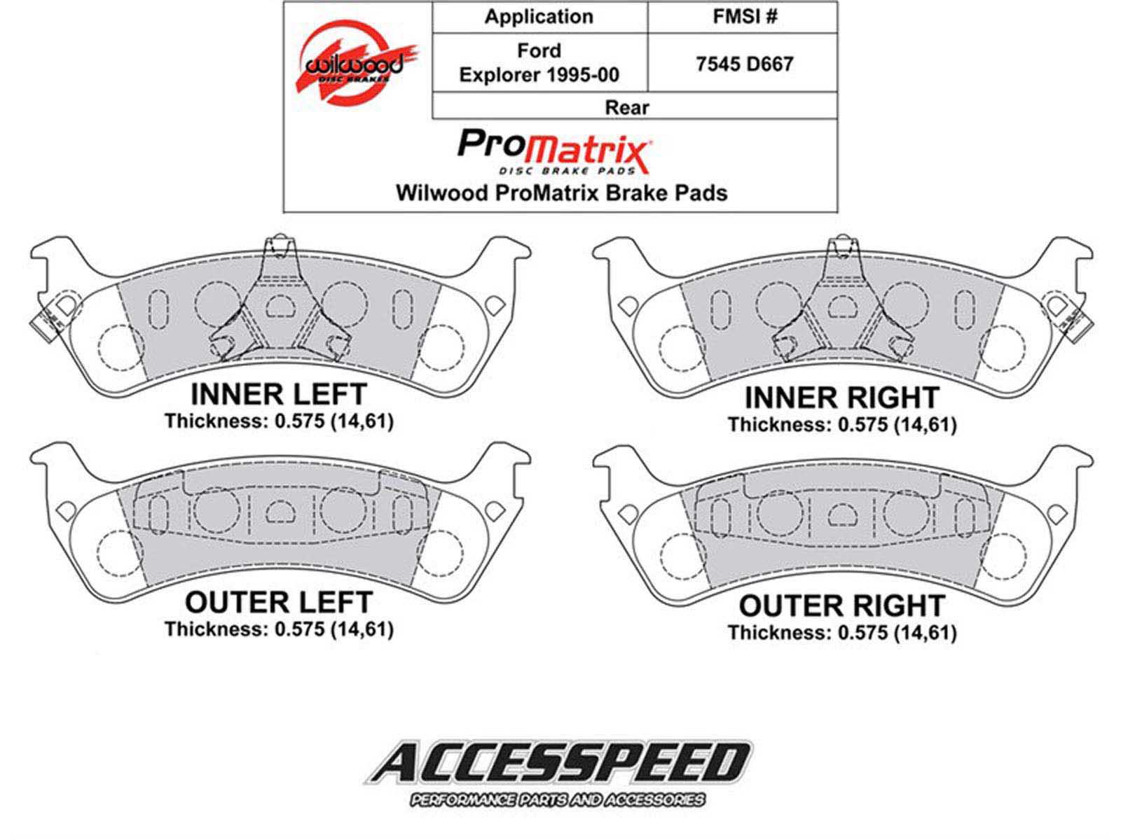 Wilwood 150-D0667K ProMatrix Brake Pad Set, Pad #D667 |