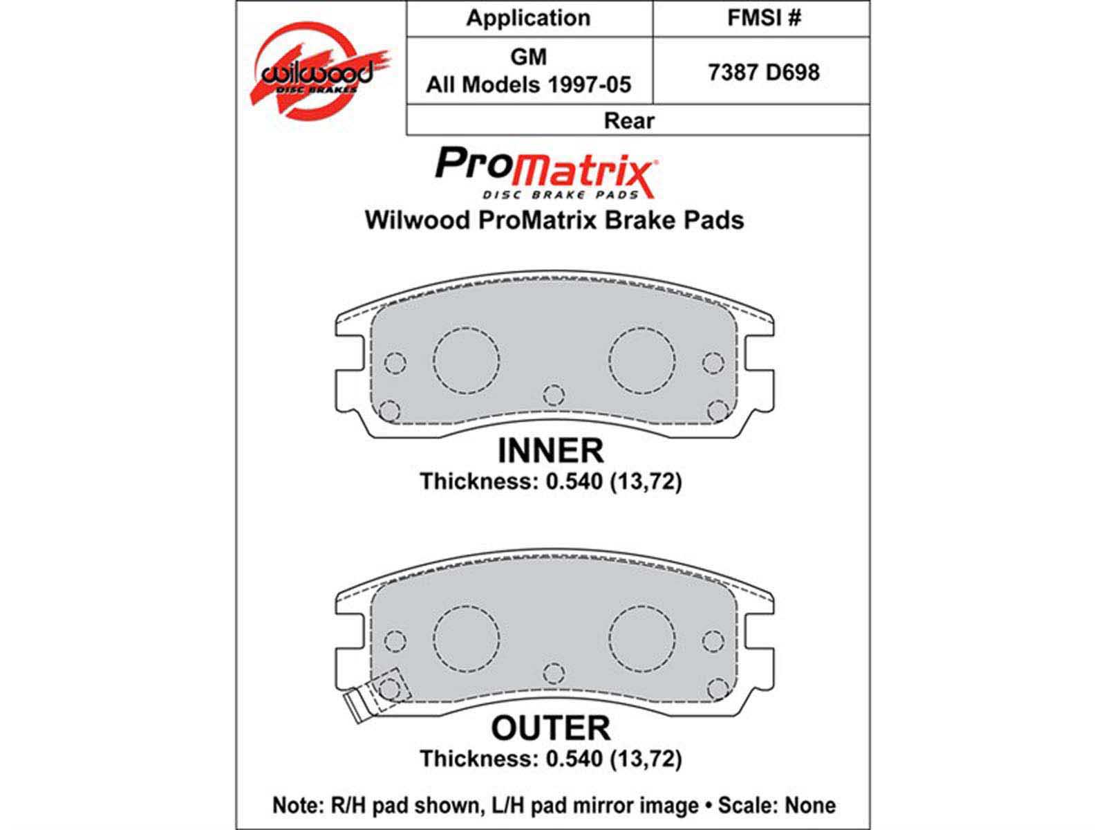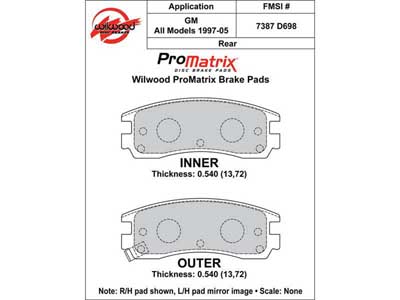 Wilwood 150-D0698K ProMatrix Brake Pad Set, Pad #D698 |