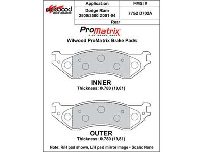 Wilwood 150-D0702AK ProMatrix Brake Pad Set, Pad #D702A