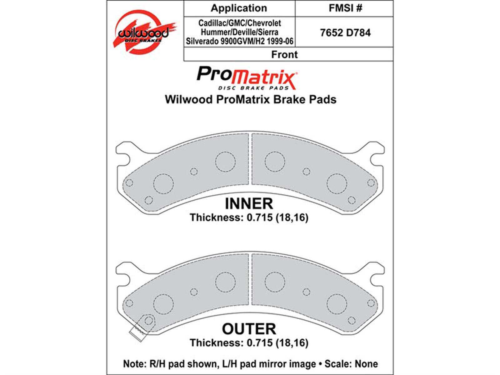 Wilwood 150-D0784K ProMatrix Brake Pad Set, Pad #D784 |