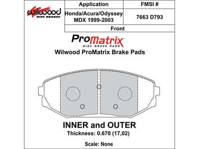 Wilwood 150-D0793K ProMatrix Brake Pad Set, Pad #D793 |
