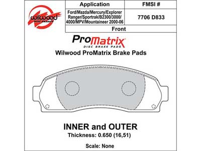 Wilwood’s ProMatrix Med-High Temperature & Friction pads have a true dual-sport performance compound for everyday street driving with the friction and heat range capabilities to handle aggressive driving on the track using OE production calipers. The street-friendly, quiet-running, light dust, non-ceramic formula provides positive response with low wheel maintenance. The Wilwood ProMatrix brake pads are track-ready with low rotor abrasion, high fade resistance, and consistent response during hard braking cycles. Ideal for drag racing, off-road, autocross and track events, as well as 4x4’s, towing, fleet vehicles, and heavy-wheel Trucks and SUV’s.