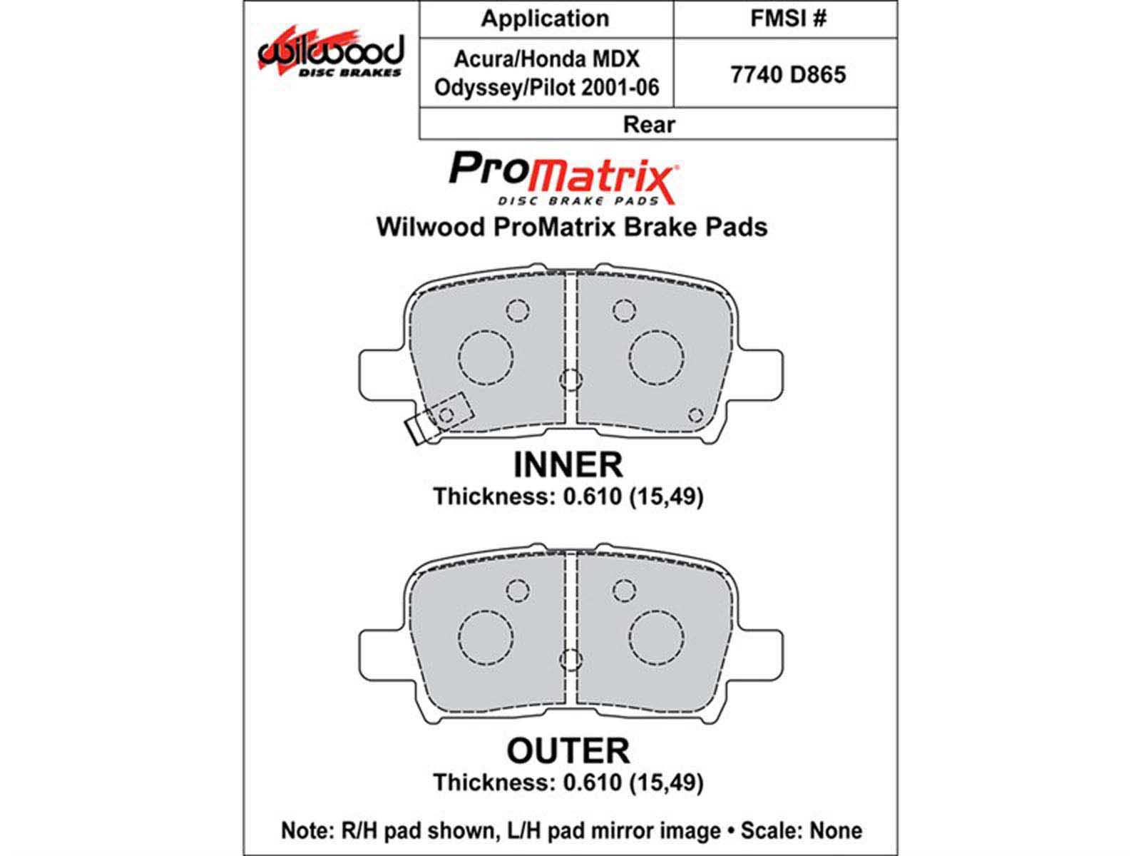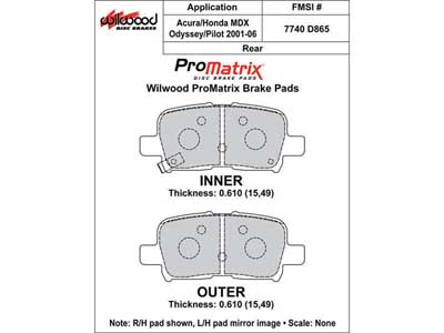 Wilwood 150-D0865K ProMatrix Brake Pad Set, Pad #D865 |