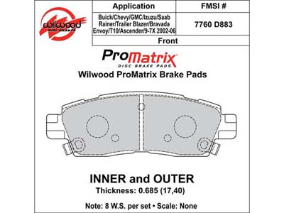 Wilwood ProMatrix dual-sport performance compound brake pads provide the ultimate combination of clean and quiet driving with high performance braking on vehicles equipped with OEM calipers. ProMatrix pads combined upgraded friction with increased resistance to heat fade for street and track use. Thousands of front and rear caliper applications are covered by 155 OE pad shapes for domestic and imported cars, with more being added. Of course, they work with Wilwood improved stock replacement calipers as well, like the GM D52 and D154, and Corvette D8.