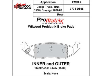 Wilwood 150-D0898K ProMatrix Brake Pad Set, Pad #D898
