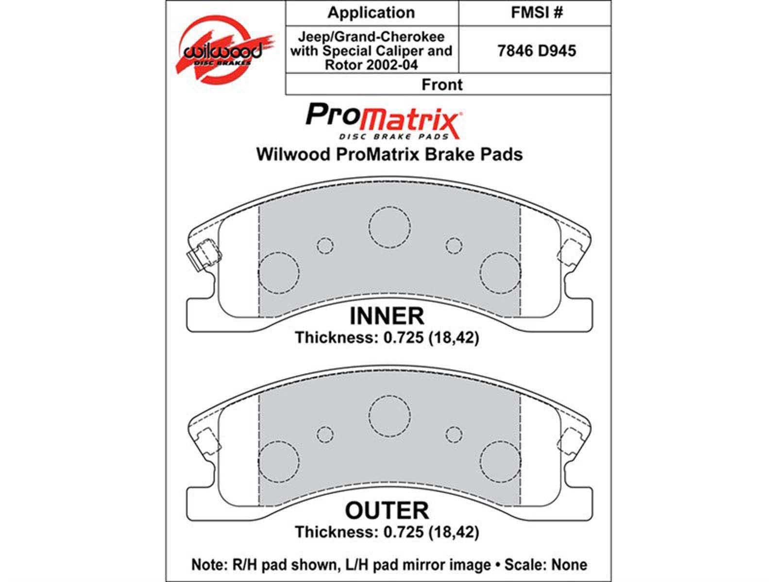 Wilwood 150-D0945K ProMatrix Brake Pad Set, Pad #D945