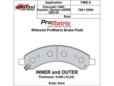 WIL-150-D0989K Wilwood 150-D0989K ProMatrix Brake Pad Set, Pad #D989 $132.17 Add to Cart