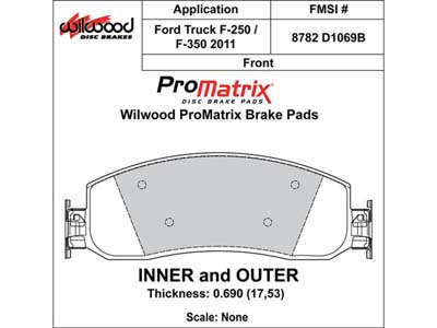 Wilwood 150-D1069BK ProMatrix Brake Pad Set, Pad #D1069B |