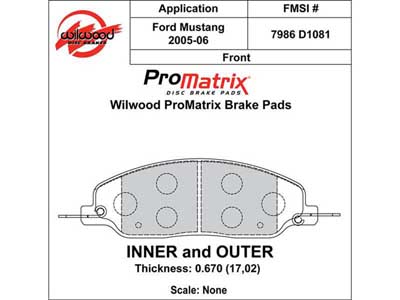 Wilwood ProMatrix dual-sport performance compound brake pads provide the ultimate combination of clean and quiet driving with high performance braking on vehicles equipped with OEM calipers. ProMatrix pads combined upgraded friction with increased resistance to heat fade for street and track use. Thousands of front and rear caliper applications are covered by 155 OE pad shapes for domestic and imported cars, with more being added. Of course, they work with Wilwood improved stock replacement calipers as well, like the GM D52 and D154, and Corvette D8.
