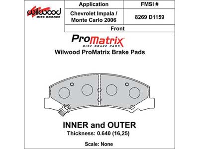 Wilwood ProMatrix dual-sport performance compound brake pads provide the ultimate combination of clean and quiet driving with high performance braking on vehicles equipped with OEM calipers. ProMatrix pads combined upgraded friction with increased resistance to heat fade for street and track use. Thousands of front and rear caliper applications are covered by 155 OE pad shapes for domestic and imported cars, with more being added. Of course, they work with Wilwood improved stock replacement calipers as well, like the GM D52 and D154, and Corvette D8.