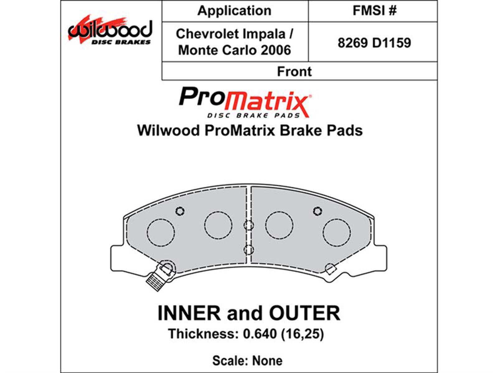 Wilwood 150-D1159K ProMatrix Brake Pad Set, Pad #D1159