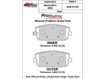 Wilwood ProMatrix dual-sport performance compound brake pads provide the ultimate combination of clean and quiet driving with high performance braking on vehicles equipped with OEM calipers. ProMatrix pads combined upgraded friction with increased resistance to heat fade for street and track use. Thousands of front and rear caliper applications are covered by 155 OE pad shapes for domestic and imported cars, with more being added. Of course, they work with Wilwood improved stock replacement calipers as well, like the GM D52 and D154, and Corvette D8.