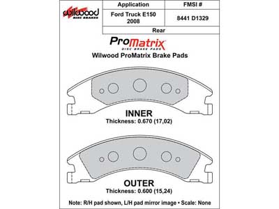 Wilwood’s ProMatrix Med-High Temperature & Friction pads have a true dual-sport performance compound for everyday street driving with the friction and heat range capabilities to handle aggressive driving on the track using OE production calipers. The street-friendly, quiet-running, light dust, non-ceramic formula provides positive response with low wheel maintenance. The Wilwood ProMatrix brake pads are track-ready with low rotor abrasion, high fade resistance, and consistent response during hard braking cycles. Ideal for drag racing, off-road, autocross and track events, as well as 4x4’s, towing, fleet vehicles, and heavy-wheel Trucks and SUV’s.